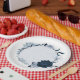 Botanische Blüten aus eleganter Marine und staubig Pappteller