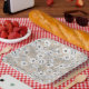 Botanische Blumenzeichnungen romantischer Rose, Gänseblümchen, Eukalyptus und Farne in einem zarten Wiederholmuster auf neutralem beigen Hintergrund. Ein interessantes Blumenmuster, um Ihren Tisch zu dekorieren und Ihre nächste Veranstaltung oder Party zu einem erinnern.