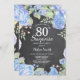Botanisches blaues Flora Überraschung 80. Geburtstag Einladung. Blumenjungen Rose zum Geburtstag Einladung für Frauen. Aquarellfarbene Blume Elegante Rose und Peony-Blume. Erwachsener zum Geburtstag. Hintergrund der Tafel. Schwarz und Weiß. 13. 15. 16. 18. 20. 21. 30. 40. 50. 60. 70. 80. 90. 100. Jedes Alter. Für weitere Anpassungen klicken Sie bitte auf die Schaltfläche "Anpassen" und verwenden Sie unser Designwerkzeug, um diese Vorlage zu ändern.