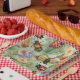 Eine lebendige Aquarellbild mit einer lebhaften Symphonie von Käfer, Ladybugs und Schmetterlingen unter delikaten Wildblumen. Dieses detaillierte botanische Muster erfasst die Schönheit der winzigen Lebewesen der Natur in einem harmonischen und skurrilen Design.