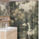 Mit diesem eleganten Duschvorhang, der einen ruhigen Schwan zeigt, der durch einen üppigen, lilafarbenen Teich gleitet, macht man sich ein Bild. Das detaillierte botanische Kunstwerk bringt zeitlosen Charme und beruhigende Energie in Ihr Bad, perfekt für alle, die die klassische, naturgetreu inspirierte Dekoration schätzen.