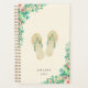 Elegante Wasserfarben botanische Flip Flops und florale Arrangements, personalisierter Planer. Texten anpassen, Stil, Farbe und Größe des Schriftartes anpassen. Auch die Hintergrundfarbe in sandigem Beige kann individuell angepasst werden.