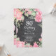Botanische Flora 80. Geburtstag Einladung. Blumenrosa-Peonies Geburtstagseinladung für Frauen. Aquarellfarbene Blume Elegante rosa Rose und Peony Blume. Erwachsener zum Geburtstag. Hintergrund der Tafel. Schwarz und Weiß. 13. 15. 16. 18. 20. 21. 30. 40. 50. 60. 70. 80. 90. 100. Jedes Alter. Für weitere Anpassungen klicken Sie bitte auf die Schaltfläche "Anpassen" und verwenden Sie unser Designwerkzeug, um diese Vorlage zu ändern.