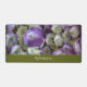 Wunderschöne, zarte und feminine lila und cremige Hydrangea-Blüten bedecken diese botanische florale Moosgrün-Fototischmatte mit Original-Fotografie von JLW_Fotografie, wie frische Blume direkt aus einem Hütte-Garten Land. Personalisieren Sie Ihren Namen nach Ihren Wünschen.