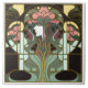 Jugendstil-inspiriertes Frauenbild mit rosa Blume.