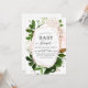Grüne Botanische Aquarell und Rose Gold - Blush Pink Geometric Spring Baby Dusche Einladungen auf weißem Hintergrund - beinhaltet schöne und elegante Schrift Typografie mit modernen botanischen Blätter und Grün für die besondere Mutter zu sein zu feiern.
