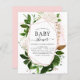 Budget Greenery Botanical Watercolor und Rose Gold - Blush Pink Geometric Spring Baby Shower Einladungen auf weißem Hintergrund - beinhaltet schöne und elegante Schrift Typografie mit modernen botanischen Blätter und Grün für die besondere Mutter zu sein zu feiern.