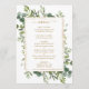 Dieses Dinner-Menü bietet gemalte Aquarellfarben Eukalyptusgrün, grüne Blätter mit goldfarbenem rechteckigem Rahmen. Für eine weiter gehende Anpassung dieses Designs klicken Sie bitte auf den Link "Weitere Anpassung". Matching-Elemente sind ebenfalls verfügbar.