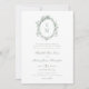 Vintages Wappen Monogram Botanical Sage Green Wedding Einladung verfügt über ein ovales Monogramm Wappen mit botanischen Reben aus Blattwerk, und elegante Skriptkalligraphie mit formalen Formulierungen und den Namen der Eltern, die die Hochzeit.