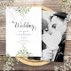 Diese elegante botanische Hochzeitseinladung mit zarten Aquarellfarben-Blätter kann mit einem Foto auf der Rückseite und Ihren speziellen Informationen zum Hochzeitstag personalisiert werden. Entwickelt von Thisisnotme©