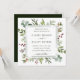 Dieses Weihnachtsfest | Holiday Hochzeitsplatz Einladung mit gemalten Aquarell Eukalyptus, grünen Blätter, roten Beeren, Kiefernästen mit einem grünen quadratischen Rahmen und einem grünen Hintergrund auf der Rückseite. Für eine weiter gehende Anpassung dieses Designs klicken Sie bitte auf den Link "Weitere Anpassung". Matching-Elemente sind ebenfalls verfügbar.