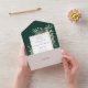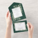 Alle in einer Hochzeitseinladung mit eleganten botanischen Aquarellfarben-Blätter auf smaragdgrünem Hintergrund und einem schicken goldenen Rahmen. Die Einladung enthält eine perforierte RSVP-Karte, die für Sie individuell adressiert oder links als leere Adresse für die Handschrift der Adressdaten Ihres Gastes verwendet werden kann. Entwickelt von Thisisnotme©
