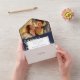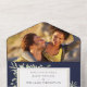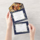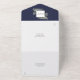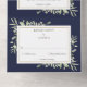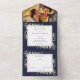 Alle in einer Hochzeitseinladung mit eleganten botanischen Aquarellfarben-Blätter auf marineblau-blauem Hintergrund, einem schicken goldenen Rahmen und Ihrem besonderen Foto. Die Einladung enthält eine perforierte RSVP-Karte, die für Sie individuell adressiert oder links als leere Adresse für die Handschrift der Adressdaten Ihres Gastes verwendet werden kann. Entwickelt von Thisisnotme©
