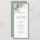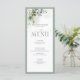 Mit diesem angesagten 4"x 9"-Menü, das mit einem Blumenstrauß aus staubblauer, schlauer und eukalyptus-botanischer Vegetation umrahmt ist, schaffen Sie den perfekten Empfang. Personalisieren Sie Ihre Details mit schönen modernen handgeschriebenen Kalligrafien in weichem Offschwarz. Ideal für, aber nicht beschränkt auf diesen Garten und Garten Hochzeit. Teil eines entsprechenden Set. Die vollständige Auflistung finden Sie hier: https://www.zazzle.com/collections/elegant_botanical_greenery_floral_watercolor_suite-119826569235577486 Kontakt-Designer für passende Produkte. Copyright Elegant Invites, alle Rechte vorbehalten.