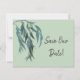 Schöne Grünen Willow Zweig Botanische Hochzeit Sichern Sie das Datum | Dies ist ein hübsch minimalistisches botanisches Hochzeitsdesign, das einen blauen grünen Weidenzweig auf einem schlauen grünen Hintergrund mit den Worten Rette Unser Datum in handgeschriebener Schrift auf der Vorderseite. Der Rücken hat das Design umgekehrt und die Namen des glücklichen Paares mit dem Datum der Hochzeit und ein Ort für eine kurze Note unter den gegensätzlichen Schriftart. Alle Textfelder sind Vorlagen, sodass Sie sie leicht anpassen können. #savethedate #Erinnerung