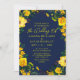 Die Botanische Blumenhochzeit in Blau-Gelb-Aquarell lädt zu einem wunderschönen Blumenstrauß mit orangefarbenen und gelben Blume mit Eukalyptus und Grün auf blauen Untergründen ein. Unten finden Sie Ihre personalisierten Hochzeitsinformationen. Einfach personalisieren, indem Sie den Text in den dafür vorgesehenen Textfeldern bearbeiten. Entwickelt für Sie von ©Evco Studio www.zazzle.com/store/evcostudio