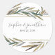 Ein schöner Hochzeitsaufkleber mit den Namen des Ehepaares und dem Hochzeitsdatum, gerahmt von handgemalten Rosmarin-Schriften. Ideal für Brautparty dank Geschenke, Gastgeschenke Hochzeiten und mehr. Einfach und elegant mit rustikalem Chic-Ambiente - Koordiniert wunderbar mit so vielen heutigen Hochzeitsstilen.