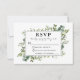 Die Watercolor Greenery Wedding RSVP Card beinhaltet wunderschöne botanische Pflanzen- und Eukalyptus-Blätter. Legen Sie die Farbe grün zurück.