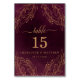 Botanische Hochzeit im eleganten Burgund und Gold Tischnummer