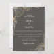 Schöne goldene Linie arbeiten botanische Blume und Blattwerk auf trendigen Beluga gray, Hochzeit Einladung. Die Rückseite der Karte weist ein elegantes goldenes Rautengitter-Muster auf.