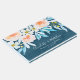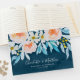 Elegantes und modernes Hochzeitsgeschenk-Gästebuch mit wunderschönen Aquarellfarben-Rose, Blume und anderem Blattwerk auf marineblau blauem Aquarell.