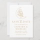 Laden Sie Freunde und Familie ein, um Ihr Hochzeitstag mit diesem eleganten botanischen Mond und Sternen Gold Save the Date retten. Die boho-Save the Date-Karte zeigt eine goldene Illustration eines Mondes, der mit funkelnden Sternen und üppigem botanischem Blattwerk geschmückt ist. Das ganze Set vor weißem Hintergrund. Das Design wird durch eine subtile moderne Kalligraphie ergänzt, die eine Touch von Eleganz und zeitgenössischem Flair schafft.