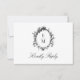 Diese Vintage Wappen Monogram Botanical Formal Wedding RSVP-Karte in Schwarz-Weiß verfügt über ein ovales Monogramm Wappen, das mit botanischen Blattweinen und eleganter Schriftzeichen-Kalligraphie bestickt ist.