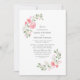 Handgemalte Aquarellfarben Blume Hochzeitseinladung. Niedliche Rosa-Blüten, Rose und Anemonen mit pastellgrünen Blätter und Baumzweigen. Die Aquarellfloralen auf weißem Hintergrund bilden einen eleganten und romantischen Kranz um die stilvolle Typografie.