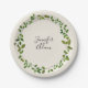 Teller mit einer Abbildung grüner Blätter auf weißem Hintergrund. Personalisieren mit Namen.