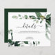 Budget Greenery Foliage Watercolor Spring Wedding Elegant and Modern Invitation Wedding Details Insert Card auf weißem Hintergrund - beinhaltet eine schöne und elegante Schriftzeichen-Typografie mit modernen botanischen Blätter und Grünpflanzen für die besondere Hochzeitstagsfeier.