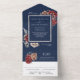 Botanische Hochzeit von Navy Blue Burgundy Bloom R All In One Einladung