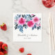 Romantische und moderne Hochzeitsnapkins mit leuchtend rosa Rose, blauen und grauen Blättern auf weißem Hintergrund.