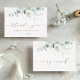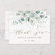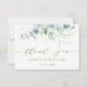 Diese Dankeschön-Karte zeigt lackierte Aquarellfarben Eukalyptus, botanisches Grün und Gold Glitzer Blätter mit sehr viel Skript auf der Rückseite.
