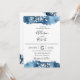 Navy Wasserfarbenwäsche mit feinen weißen handgezogenen Blattfähigem Zweig, Einladung Hochzeit.
