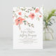 Liebliche und romantische Hochzeitseinladung mit wunderschönen blassrosa Blume, Ästen und Blüten. Romantische Blumen laden zu einer Sommerhochzeit im Freien im Garten, im Garten oder auf dem Land ein. Pastellpinke und Grüntöne sind auf matten Papiersorten bemalt.