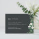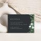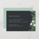 Teilen Sie Ihre Hochzeitsempfangsdetails mit Ihren Gästen mit diesen eleganten botanischen Einzugskarten, die zur Abstimmung mit unserer Hochzeitssuite "Greenhouse" entworfen wurden. Das Design zeigt die Details Ihres Empfangs, wie z.B. Zeitpunkt, Veranstaltungsort und Adresse, in knalligen, weißen Schriftzeichen auf einem schwarzen Hintergrund mit winzigen weißen Blume und grünem Blattwerk.