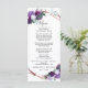 Botanische Hochzeitsempfehlung mit Lila Blumen Menükarte