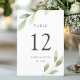 Diese Hochzeitssemble-Tischnummer zeigt Blätter in Aquarelltönen in verschiedenen Grüntönen. Für eine weiter gehende Anpassung dieses Designs klicken Sie bitte auf den Button "Anpassen". Matching-Elemente sind ebenfalls verfügbar.