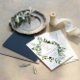 Unser schönes botanisches Blattdesign in Aquarellfarbe ist der Hintergrund für Ihre Hochzeitsdetails auf dieser großen Ankündigungskarte. Die gedämpften Töne des grünen Blätterblattes verleihen dem Design, das zu jeder Jahreszeit für eine Hochzeit geeignet ist, ein zeitloses klassisches Flair. Mit elegantem Schriftart für Ihre Details.