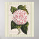 Schöne Vintage botanische Illustration einer Kamelie japonica - Niederländisch von Derby - aus einem antiken Druck des Botanikers Louis Van Houtte aus dem 19. Jahrhundert. Zig Zag Streifen Hintergrund.