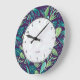 Botanische Lila und grüne Blätter Nahtloses Muster Große Wanduhr