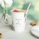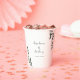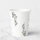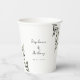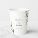 Moderne grüne Kalligraphie Hochzeitspapiere Tassen. Botanischer Olivenzweig für eine italienische Stilhochzeit.