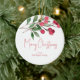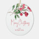 Diese personalisierten Weihnachtsschmuck-Elemente sorgen für Ihren Gruß mit einer Top-Grenze aus Blätter und roten Beeren auf beiden Seiten. Verwenden Sie die Vorlagenfelder, um diesem runden Ornament Ihren benutzerdefinierten Text hinzuzufügen. Besuchen Sie www.zazzle.com/lovelypaperboutique, um mehr Urlaubsdesigns zu sehen und Ihre eigenen zu kreieren