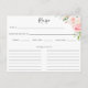 Hübsche Aquarellfarbe Rosa Blütenblätterung und grünes Blattwerk, Rezeptionskarte. Elegante Bouquets mit rosafarbenen Blume und zarter Vegetation. Die Rezeptionskarte bietet Platz für den Titel, von der Küche, den Servieren, der Vorbereitungszeit, der Kochzeit, den Zutaten und den Anweisungen. Ideal für Brautparty-Rezepte-Kollektionen.