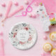 Stilvolle Teller für Hochzeitsfeiern, mit floralen Aquarellen-Design mit Namen und Hochzeitsdatum. Ideal für Garten, Brunch oder lässige Empfänge.