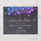 Save The Date! Verkünden Sie Ihre Hochzeit mit Freunden und Familie mit diesen günstigen rustikalen chalkboard und eucalyptus speichern Sie die Datumskarten. Diese Budget Hochzeitskarten haben eine Umschlagoption. Personalisieren Sie mit Namen, Hochzeitsdatum, Ort. Fügen Sie weitere Informationen auf der Rückseite hinzu. Diese einzigartige grüne Hochzeit rette die Karten werden einen bleibenden Eindruck machen, Ihre Gäste werden sicherstellen, Save the Date! COPYRIGHT © 2020 Judy Burrows, Black Dog Art - Alle Rechte vorbehalten. Botanische Save the Date-Karte mit rustikalem Schiefer