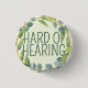 Ein weiteres niedliches schwerhöriges Abzeichen von JessicaAmber! Dieser Knopf zeigt den Slogan 'Hearing' in einem schmalen Schriftart, umgeben von einem grünen Kranz von Blätter, auf einem hellgrünen Hintergrund. Sie können den Text nach Bedarf bearbeiten. Ein tolles Geschenk für Ihre Mutter oder Großmutter, die Hörgeräte trägt. ⭐ Für weitere nützliche Taubheitszubehör besuchen Sie mein Geschäft Zazzle.com/JessicaAmberArtist ⭐ Für benutzerdefinierte Bestellungen, schreiben Sie mir auf Zazzle