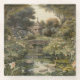 Vintage Malerei einer botanischen Szene von Schwänen, die in einem englischen Garten mit Wasserlilien, Brücken und vielen exotischen Blume schwimmen