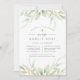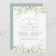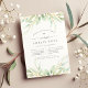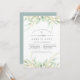 Elegante Aquarelleneinladung für die Taufe, Taufe oder Widmung des Kleinen umrahmt Ihre Kirchenfeier und Party Details mit einem Rahmen von schlichten pastellfarbenen Aquarellen und Blätter. Ein winziges Kreuz vervollständigt das Design.
