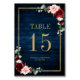 Botanische Tischnummer Navy Blue Blush Pink Rose